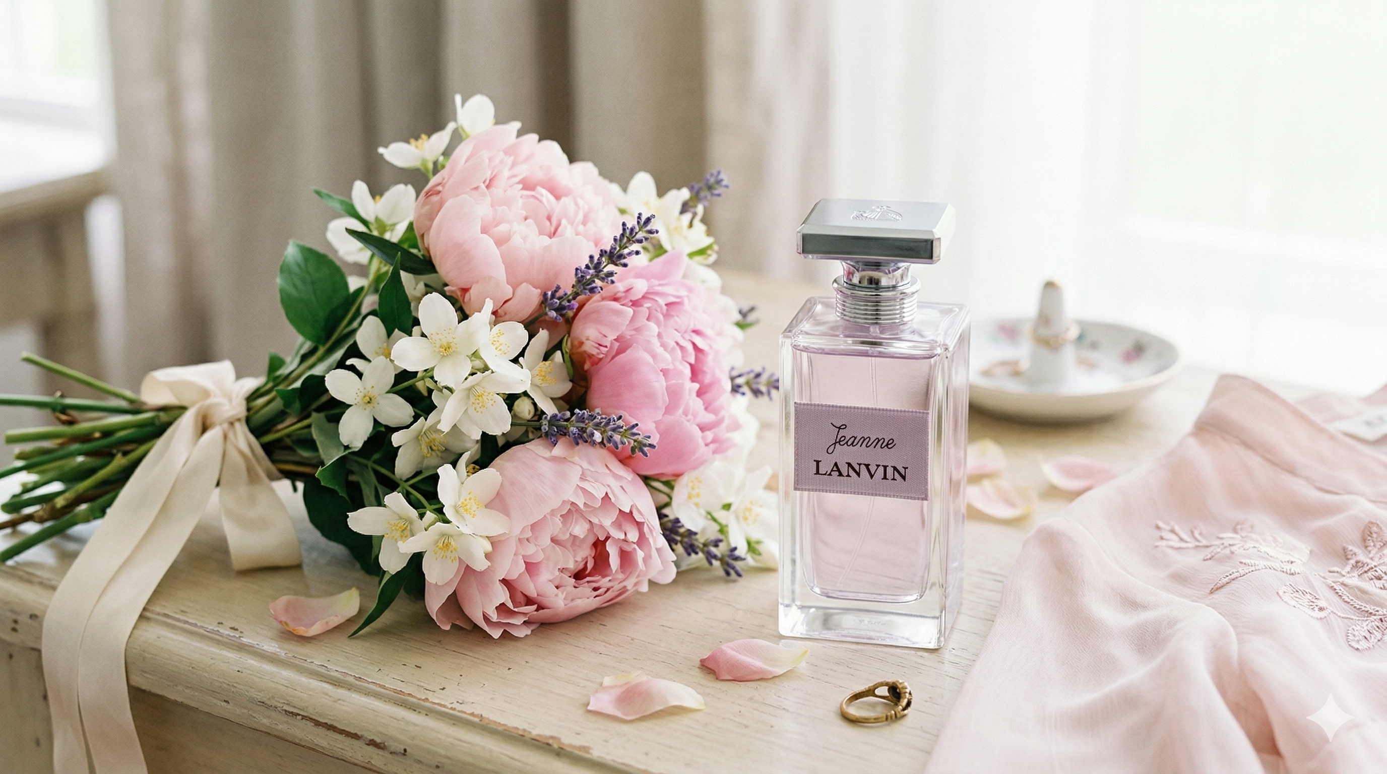 20대 30대 여자 향수 추천 랑방 잔느와 꽃다발이 어우러진 감성 연출 사진